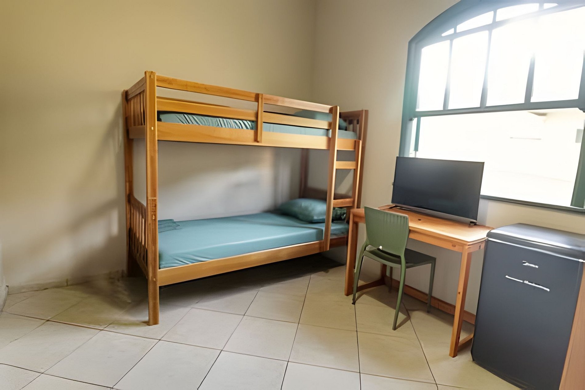 Quarto localizado no centro de Jundiaí, com banheiro e cozinha compartilhados entre os hóspedes. Possui dois, beliches, ventilador de teto, TV, frigobar e mesa de trabalho. Vaga de garagem disponível sob consulta. (IMPORTANTE: O quarto é privativo e possui fechadura digital, cozinha, banheiro e lavandeira podem ser compartilhadas com outros hóspedes).