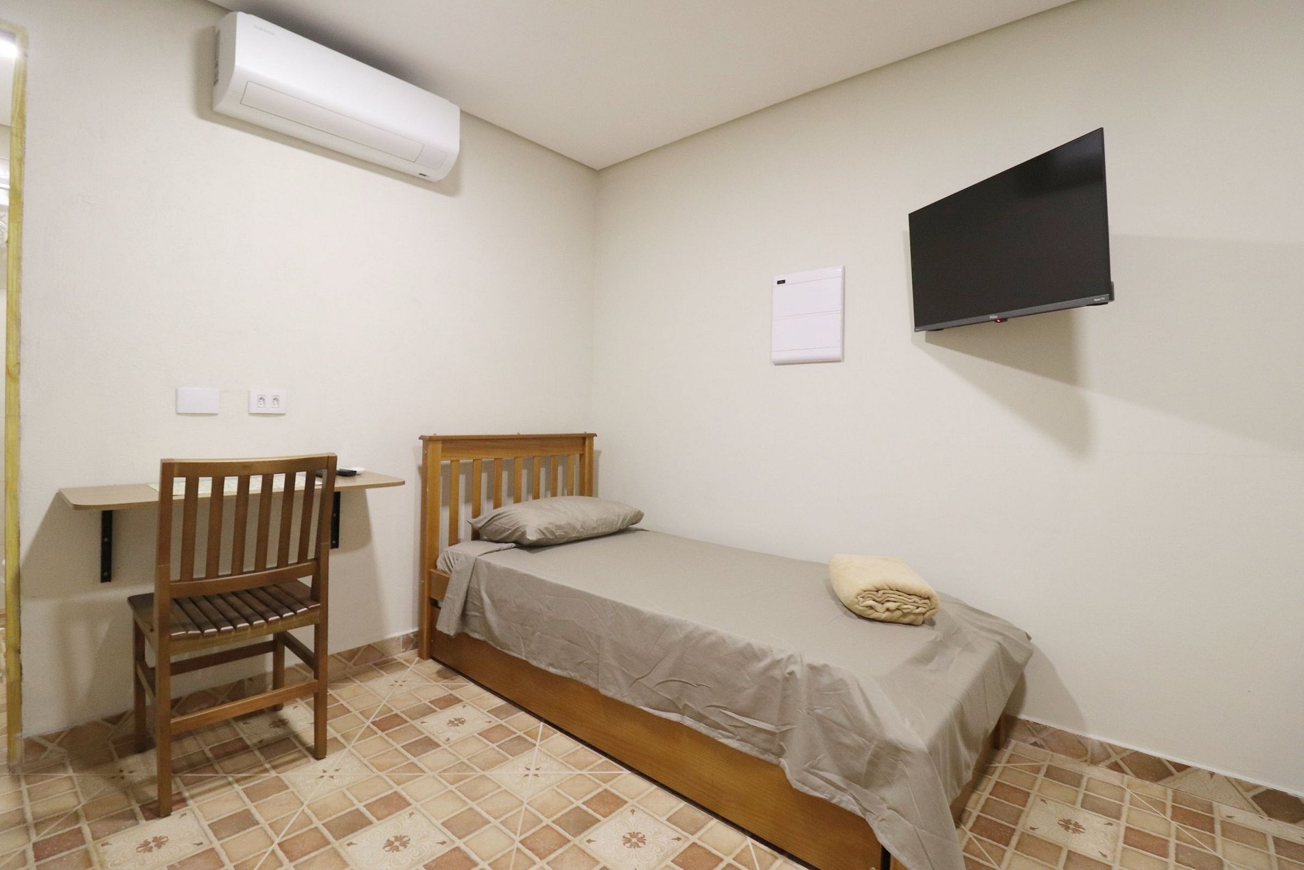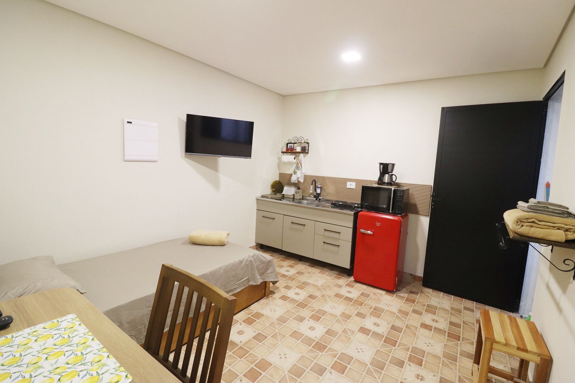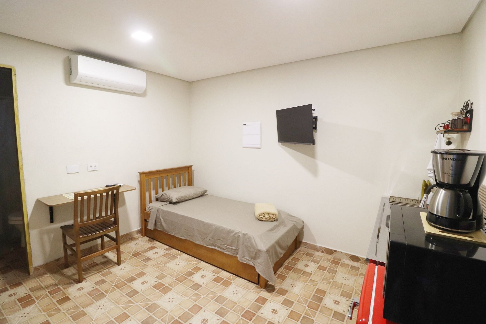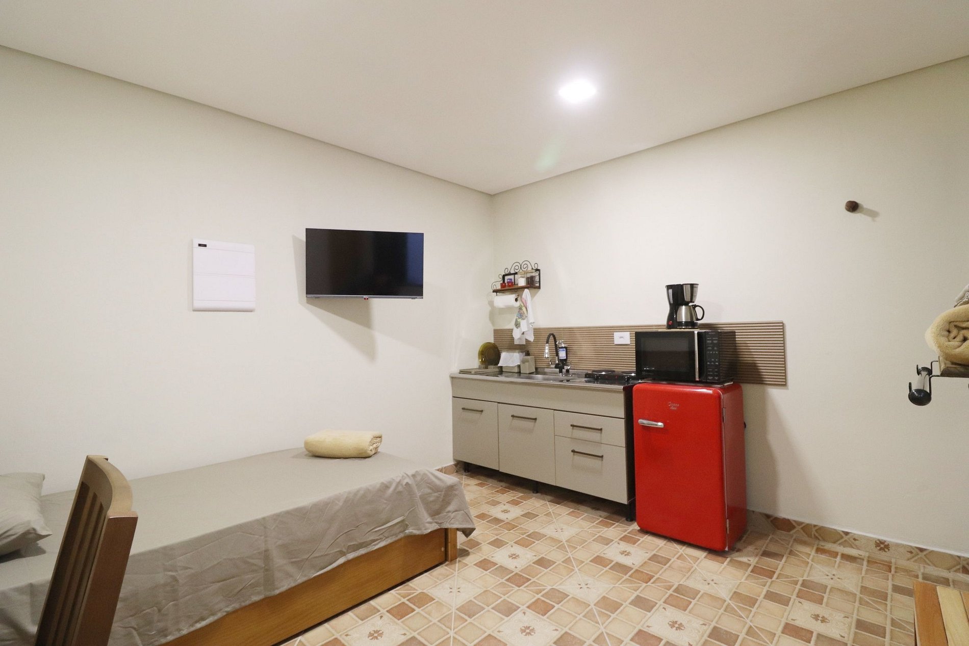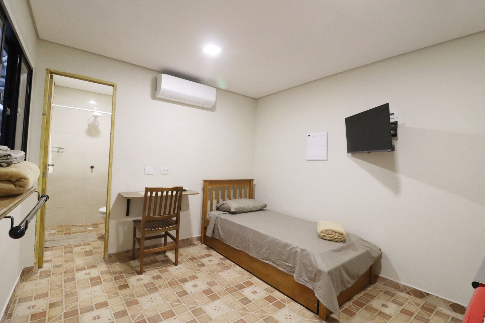Conforto e estilo rústico no coração de Franco da Rocha! Espaço renovado com decoração inspirada no campo, equipado com frigobar, fogão elétrico, cafeteira, ar-condicionado e banheiro privativo. Uma cama de solteiro mais uma cama auxiliar (bicama). A poucos passos do principal centro comercial da cidade, com tranquilidade e comodidade em um só lugar. A 12 minutos da Escola Superior de Bombeiros do Estado de São Paulo A 1km da Estação de Trens de Franco da Rocha